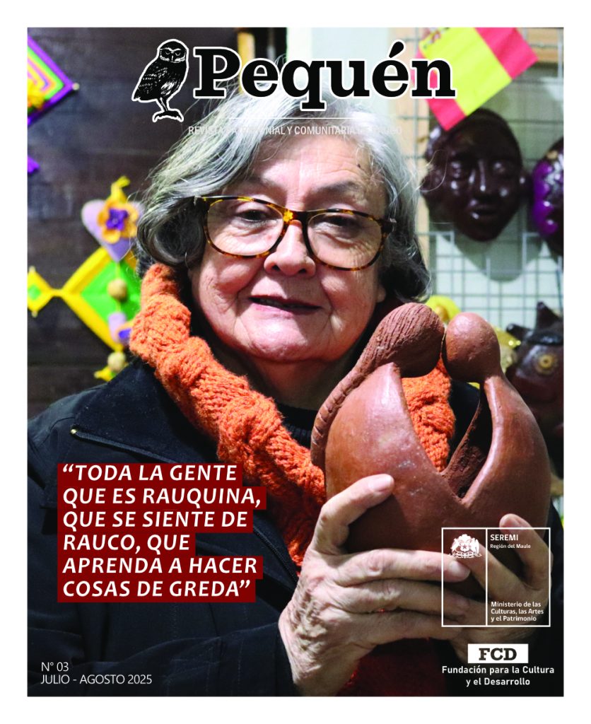 Pequén es la revista patrimonial y comunitaria de Fundación para la Cultura y el Desarrollo. Su propósito es visibilizar las memorias, tradiciones y expresiones culturales del mundo rural, con foco en la comuna de Rauco. A través de relatos, entrevistas y colaboraciones locales, busca fortalecer la identidad territorial y aportar a la memoria colectiva.